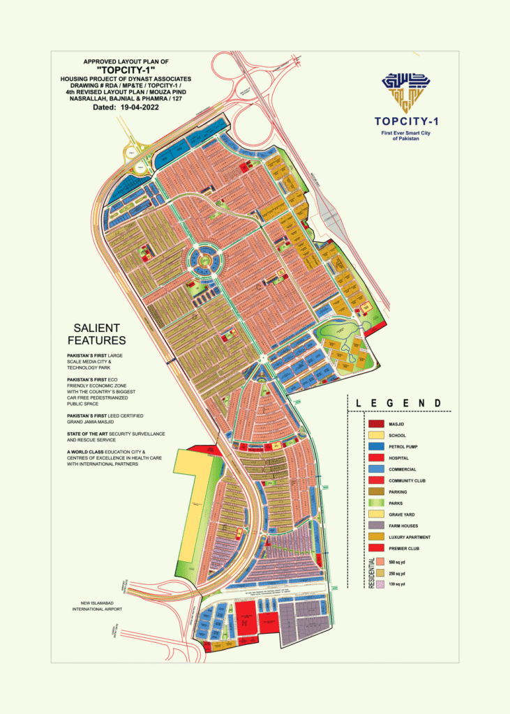 Top City is a modern and well-planned housing society located near the New Islamabad International Airport.